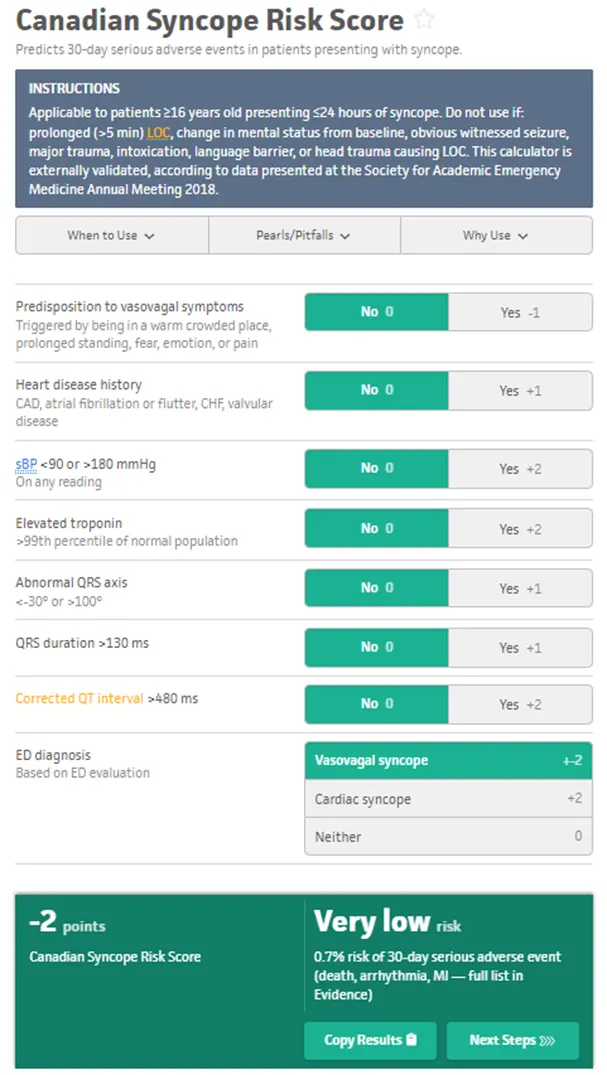 (3) Canadian Syncope Rsik Score