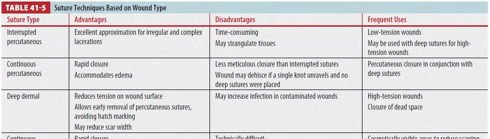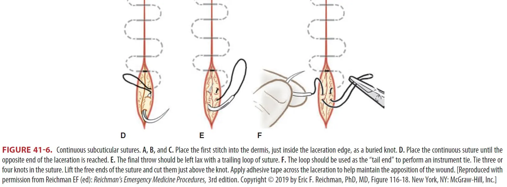 (3) 주로 long linear laceration 봉합 시 쓰임 (irregular shape wound에 적합하지 않음)
