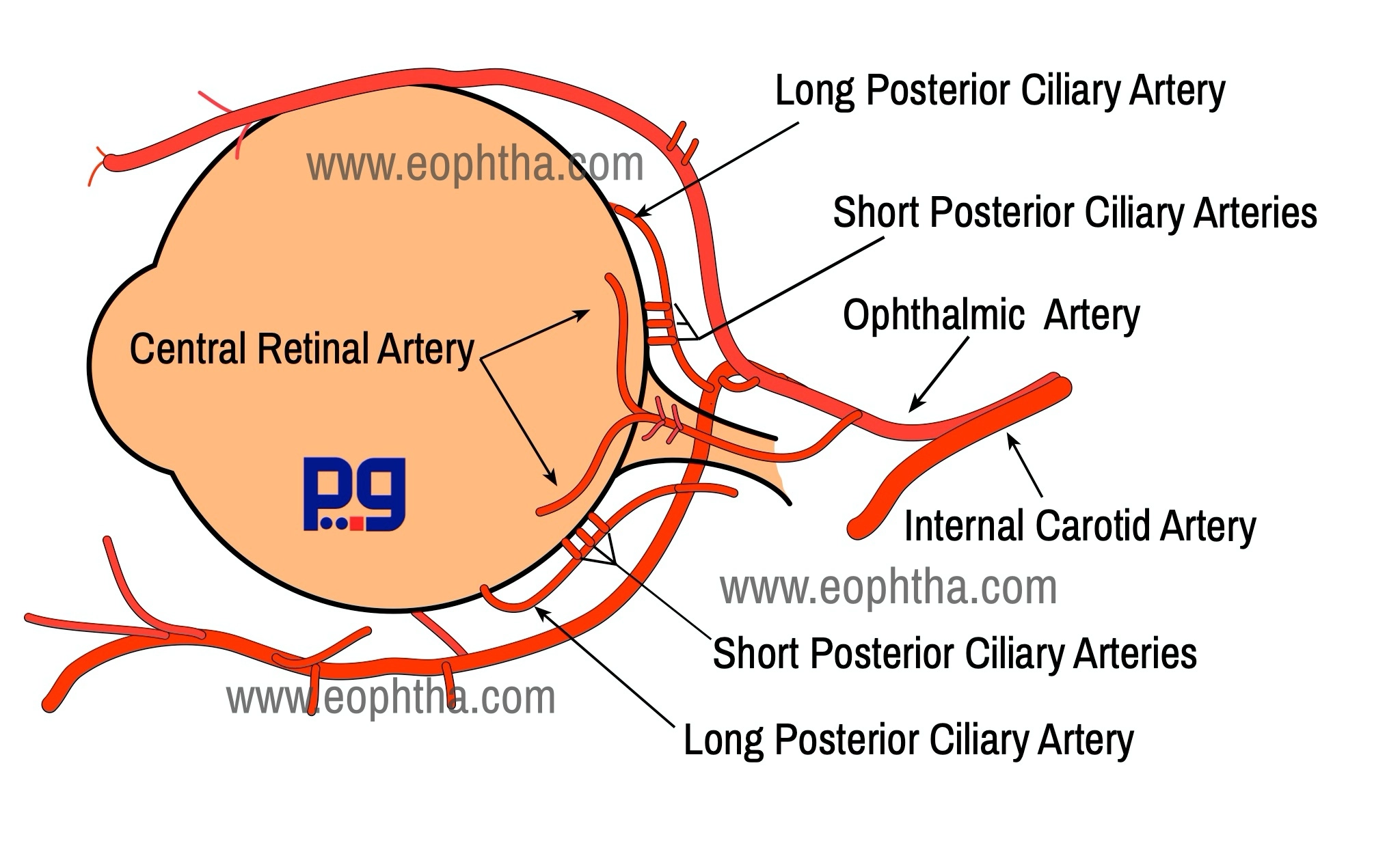 : Central retinal a.(inner retina), Ciliary a.(outer retina),