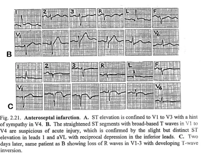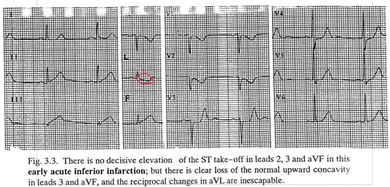 myocardial infarction은 발생하였으나, EKG 상 distinctive feature를 나타내기 이전에 ECG가 시행된 경우, 놓쳐서는 안될 sign들에 대한 section입니다.