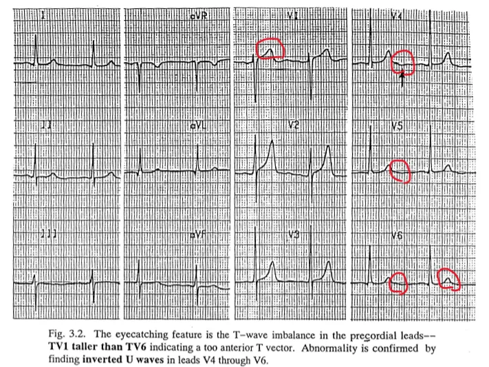 예외없는 abnormal finding은 아니나, inverted U wave 보일 시 다른 abnormal finding을 찾으려고 노력해야한다