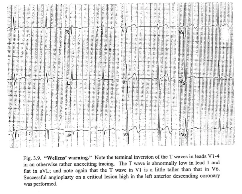 Terminal inversion of the T wave in any of the anterior precordial leads
