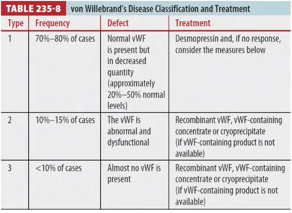 (3) Congenital vWD : 3 major groups (Table 235-8)