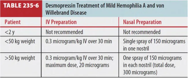 (1) 대부분 vWD 환자의 bleeding episodes는 국소적 처치 및 desmopressin으로 조절됨
