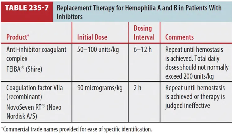 coagulation factor VIIa (recombinant)를 사용한다. (Table 235-7)