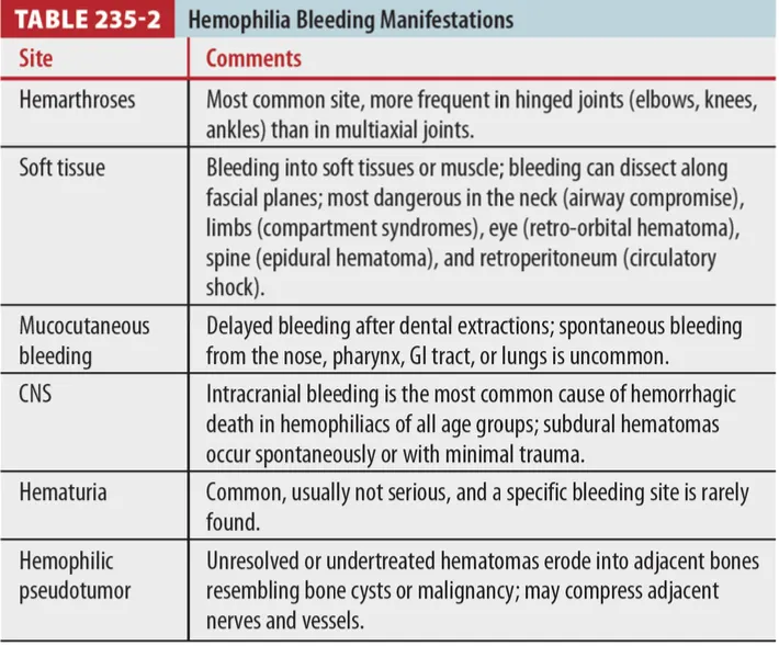 (1) Easy bruising, joint & muscle에 반복적인 bleeding이 특징적임.