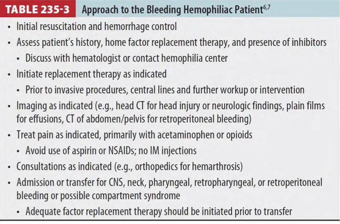 (1) Typical joint, soft tissue, nasal bleeding : 응급실에서 initial treatment 후 퇴원 가능