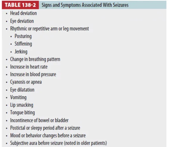 Signs and Symptoms Associated With Seizures (Table 138-2)