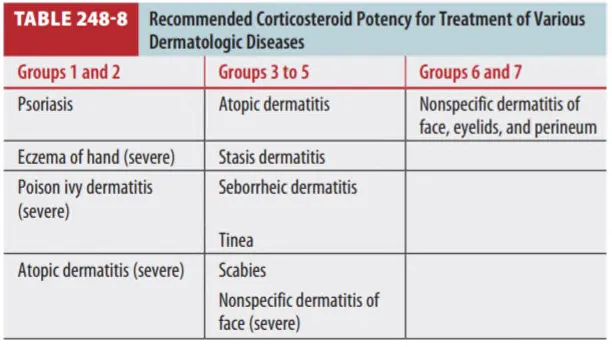 Hydrocortisone (group7) : 1%~2.5%, 소아에도 안전, 일반적으로 많이 쓰임