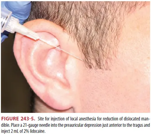Tragus 바로 앞의 preauricular depression에 21-gauge needle을 이용하여 2% lidocaine 2mL를 투여