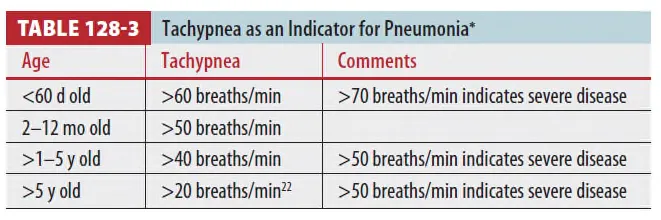 빠른 호흡은 폐렴을 진단하는 데 있어 가장 간단하고 표준화된 스크리닝 도구이다