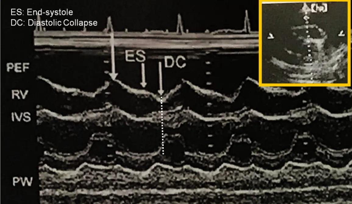 MV 열리는 시점이 diastole. 이때 RV free wall이 collapse하는 것 보임.