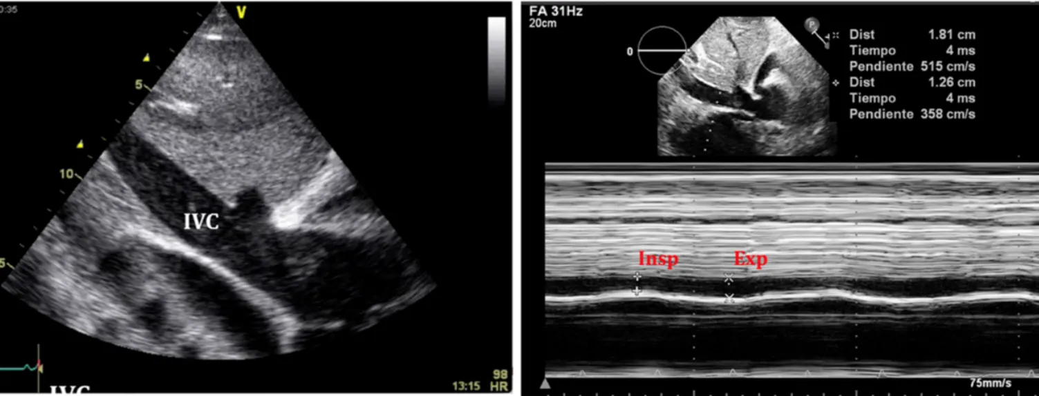 IVC plethora 는 diameter 2cm 이상 에서 최대 직경이 50% 미만 감소 시를 말하는 것.