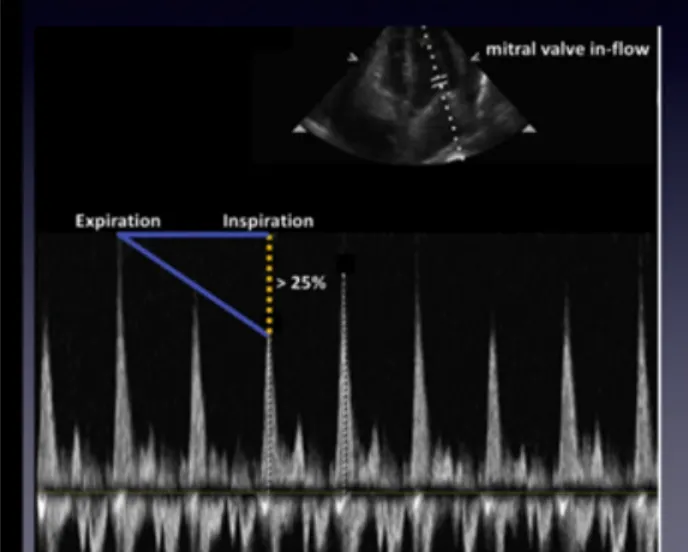 : 호흡에 따른 MV inflow 속도변화가 더 큰 것.