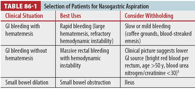 ① GI bleeding 의 경우 NG tube를 사용하여 liquid content를 제거하는 목적으로 사용할 수 있으나,
