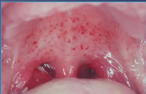 입천장 부분의 점상 출혈(petechia) - Epstein-Barr virus(EBV) 감염 ↑
