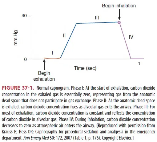 ② PETCO2가 50mmHg를 넘거나 10mmHg 이상 증가한다면 Hypoventilation을 의미한다