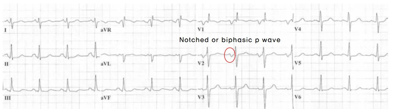 ② Notched or biphasic p wave (Fig 54-2)