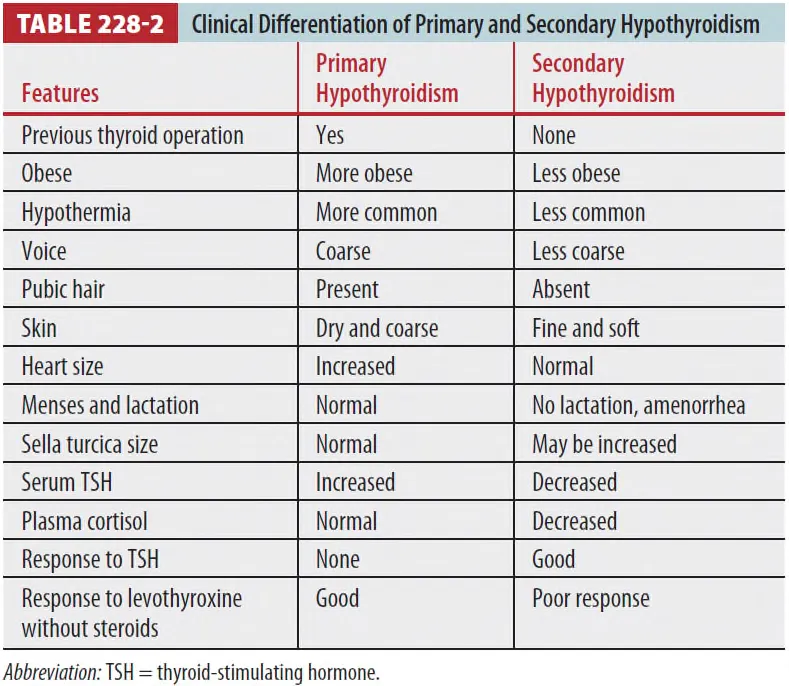 (1) TSH (pituitary gland), thyrotropin-releasing hormone (hypothalamus) 결핍