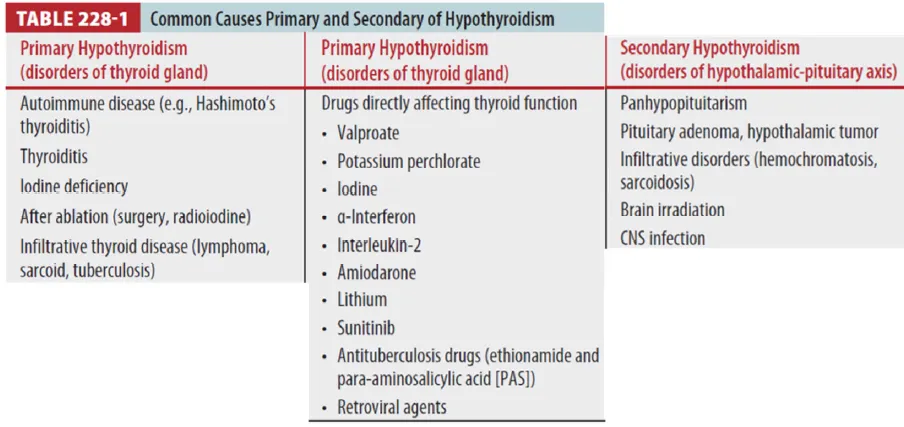 (2) 수술적 절제술, radioactive ablation, 몇 가지 약물도 원인