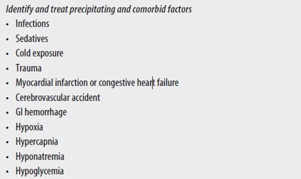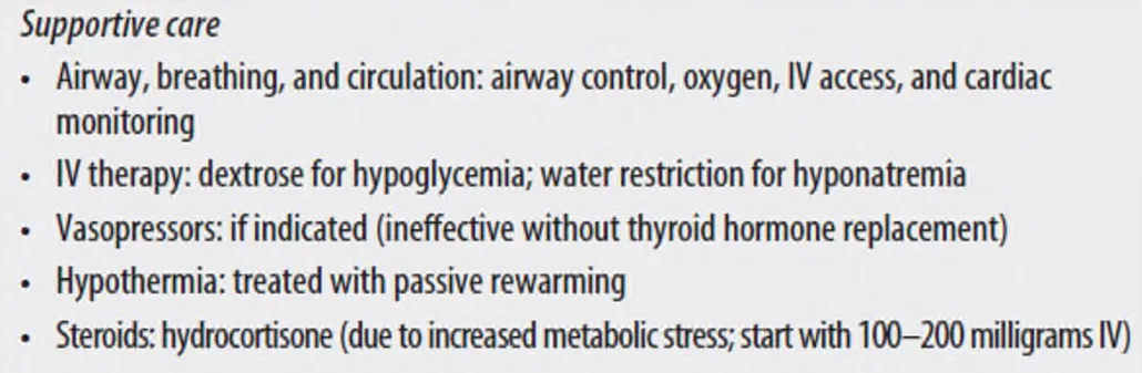 : Uncorrected hypothyrodism, Mental status changes or coma, and hypothermia (<35.5Ⅳ)
