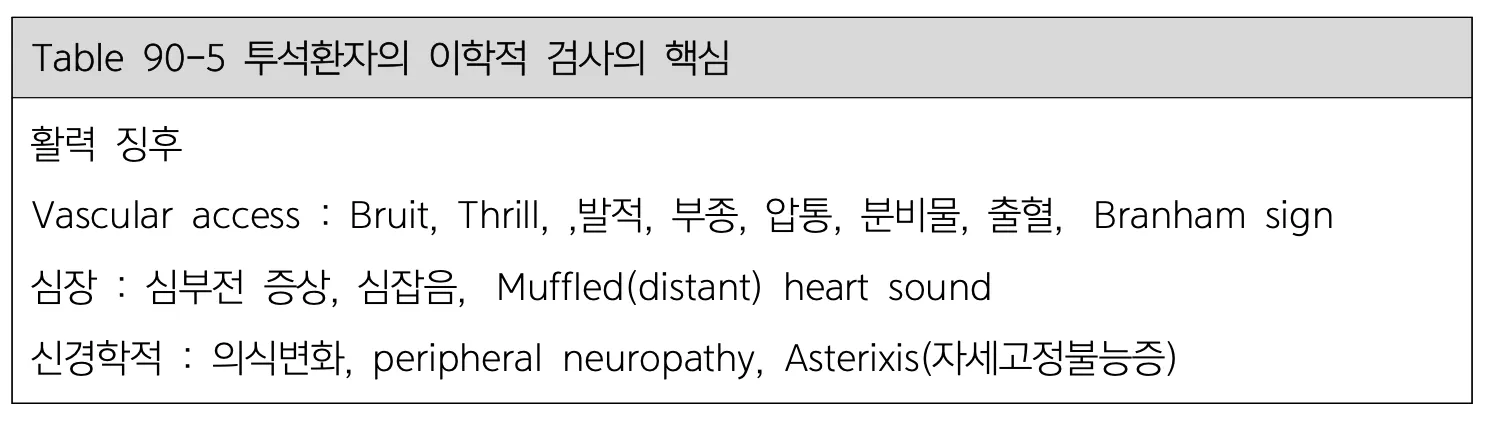 보통 투석 2년 후 나타나고 투석횟수를 늘리거나 신이식을 해도 호전되지 않는다.