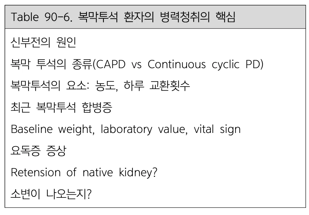 * 전형적인 막 투석은 하루 4차례 8L의 투석액을 사용하고 10L를 배액한다.
