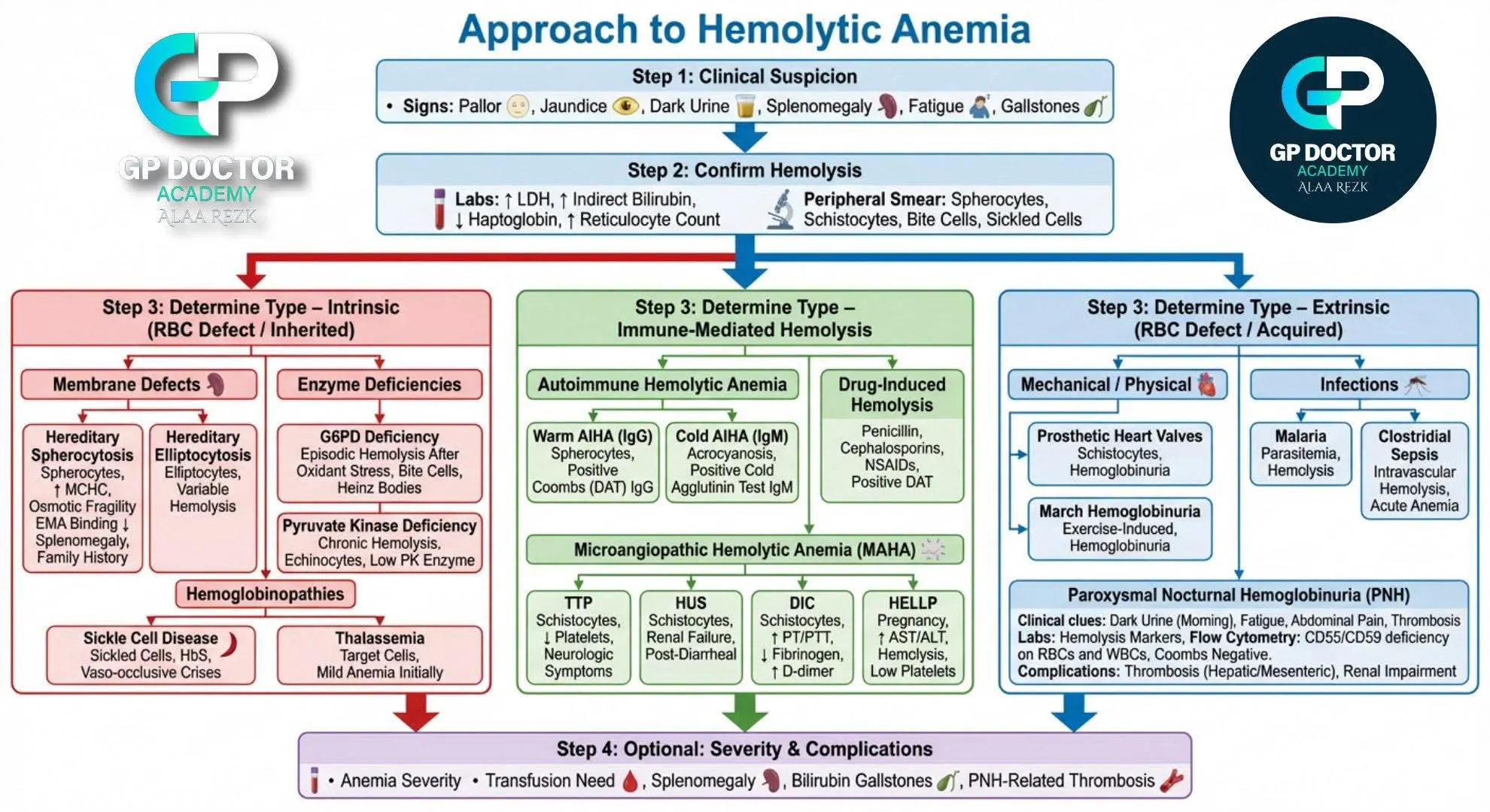 (3) Schistocyte(fragmented RBC) : MAHA(DIC, TTP, HUS), prosthetic heart valve, severe burn