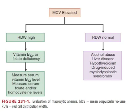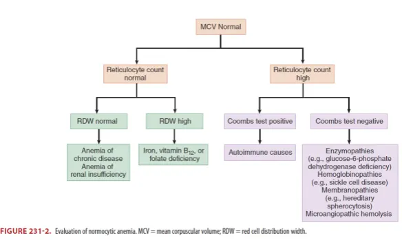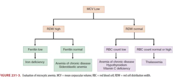 Algorithm for the evaluation of anemia (Rosen 9th ed. pg 1466, Fig 112-1)
