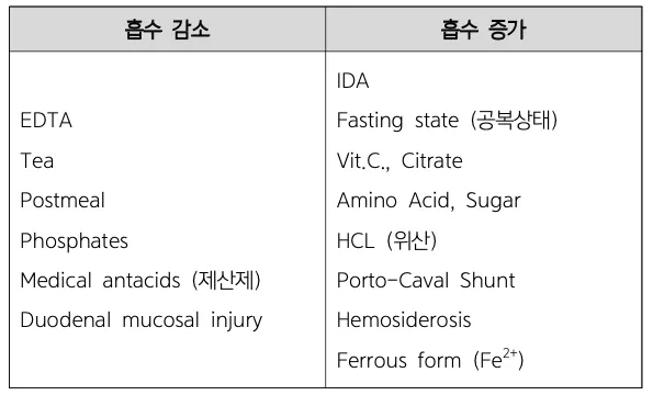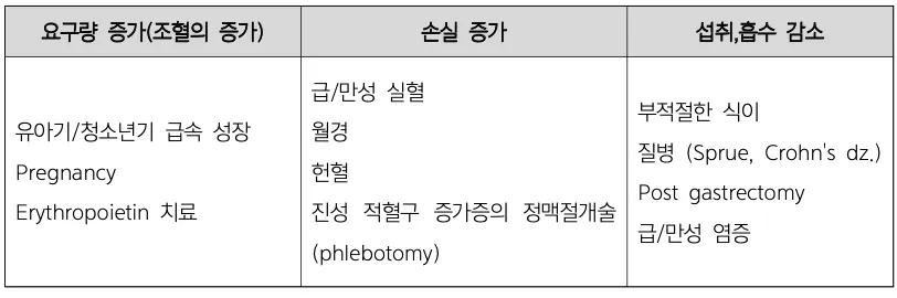 (1) 철 요구량의 증가 : 유아기나 청소년기의 급속한 성장, 임신