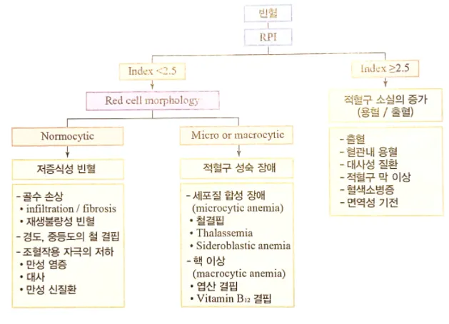 빈혈을 동반하면서 RPI가 3% 초과 - 몸에서 조혈작용이 활발히 일어남