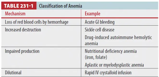 : 혈액 중의 혈색소량이 감소 · 신체의 조직과 장기에 도달하는 산소의 양이 감소
