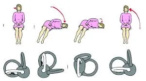 각 단계(90도 회전)마다 30~60초간 유지하여 이석이 점진적으로 utricle 방면으로 이동하게 함.
