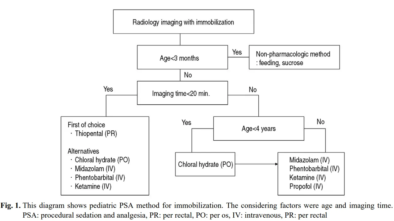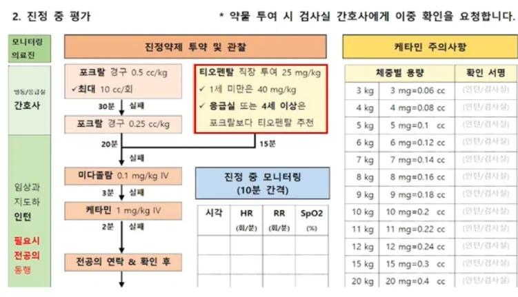 긴 영상검사 (MRI) : 4세 미만은 Pocral, 4세 이상은 Pocral 효과가 떨어지므로, IV 제제 사용