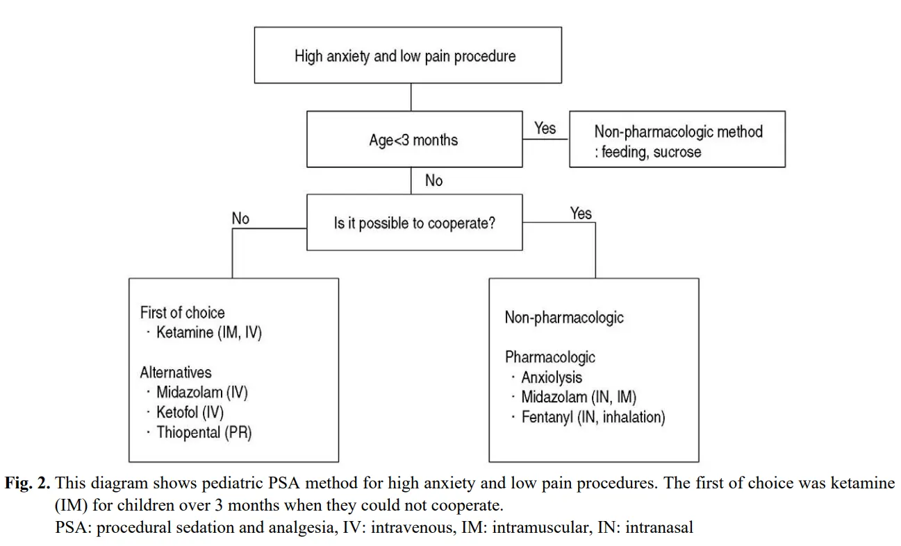 진정보다는 진통목적 주로, 술기 진정 단독목적 활용은 드물고 소아전문의/진정전문의의 레퍼런스가 필요.