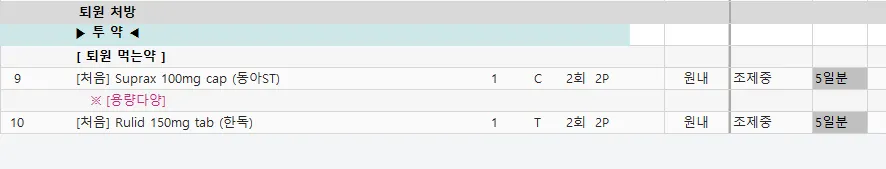 증상이 지속되거나, 새로 CXR 변화가 있으면 입원 또는 지속관찰.