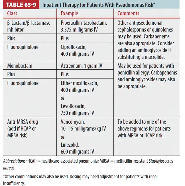 Amikacin 15mg/kg IV q 24hr | Anti-pneumococcal FQ • Gemifloxacin 200mg IV q 24hr • Levofloxacin 750mg IV q 24hr • Moxifloxacin 400mg IV q 24hr |