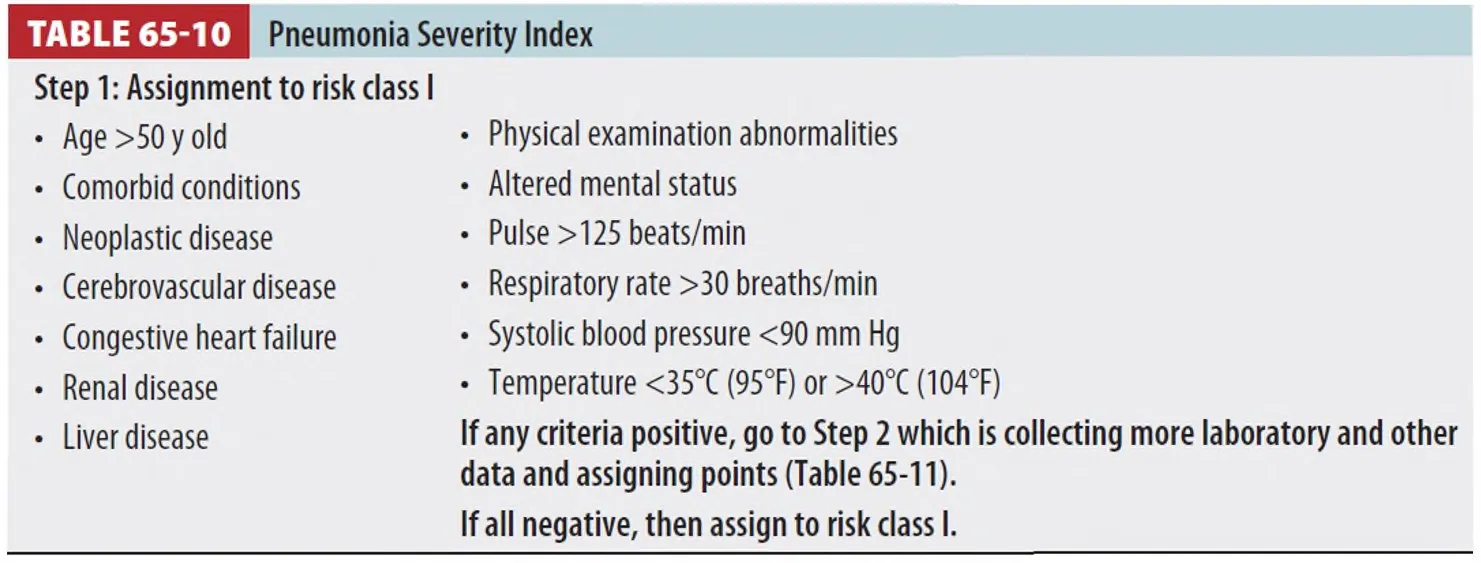 OPD f/u을 결정하게 되며 하나라도 Positive가 있으면 Step 2로 Table 65-11을 참조해 Rick