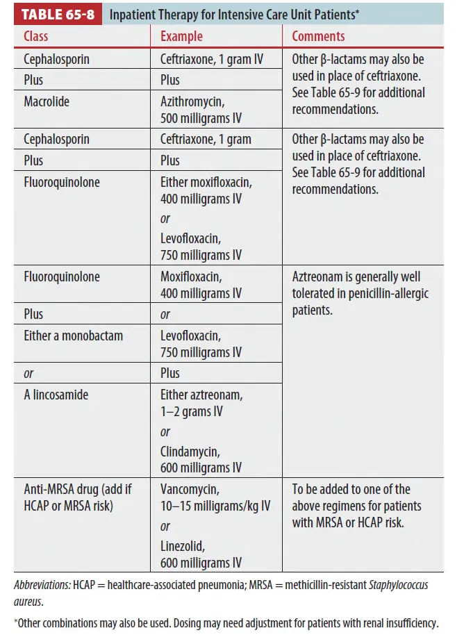 (3) Most severe CAP 균주는 S. pneumoniae와 Legionella로 CAP의 치료에는 이 둘을 cover 해야한다.