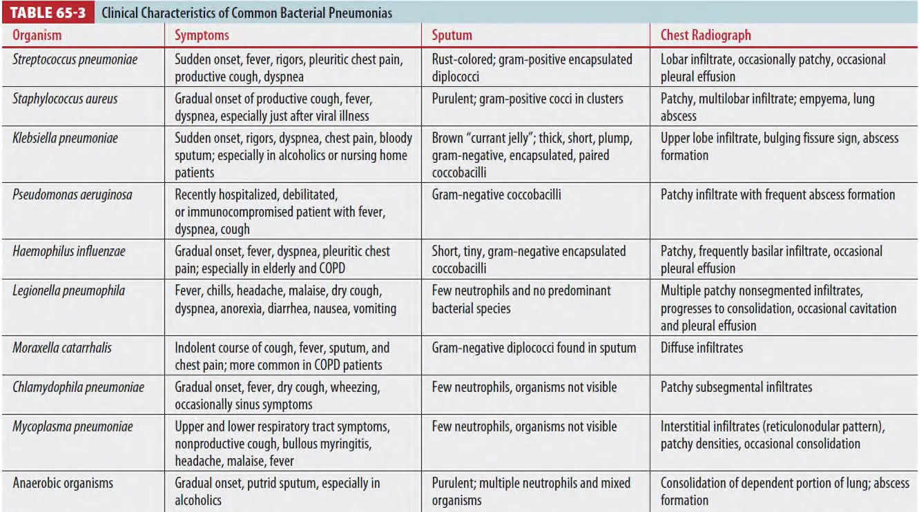 (3) Influenza는 고령에서 M/C serious viral infection이며 H1N1이나 seasonal influenza 후 발생하는 postinfluenza bacterial pneumonia에서 M/C pathogen은 S. pneumoniae, S. aureus or H. influenzae입니다.
