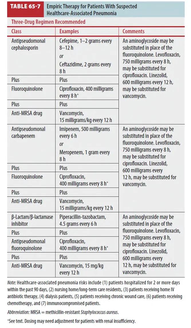 (3) 이들 환자군은 Health care-associated pneumonia의 risk가 높아 치료 시 MRSA에 대한 치료가 권장된다.