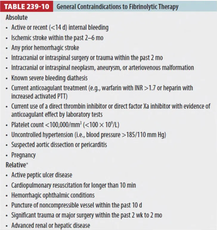 : STEMI, non-STEMI, UAP, DVT, PTE, TIA, stroke, 혈관폐색 예방 (Table 239-1 참조)