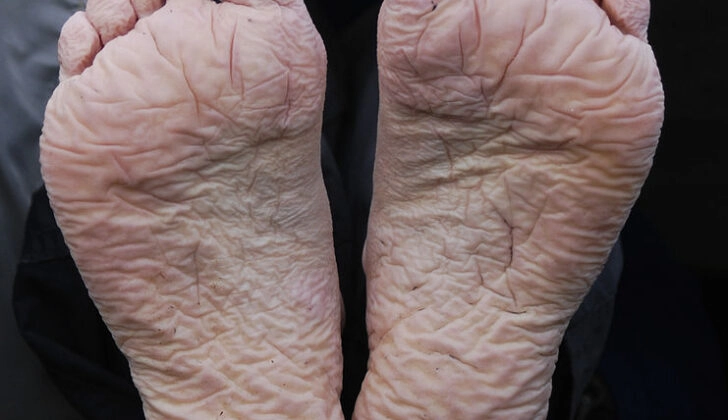 발의 피부가 하얗고 연하게 변하고 발바닥 면이 갈라지면서 부어 오르는 증상