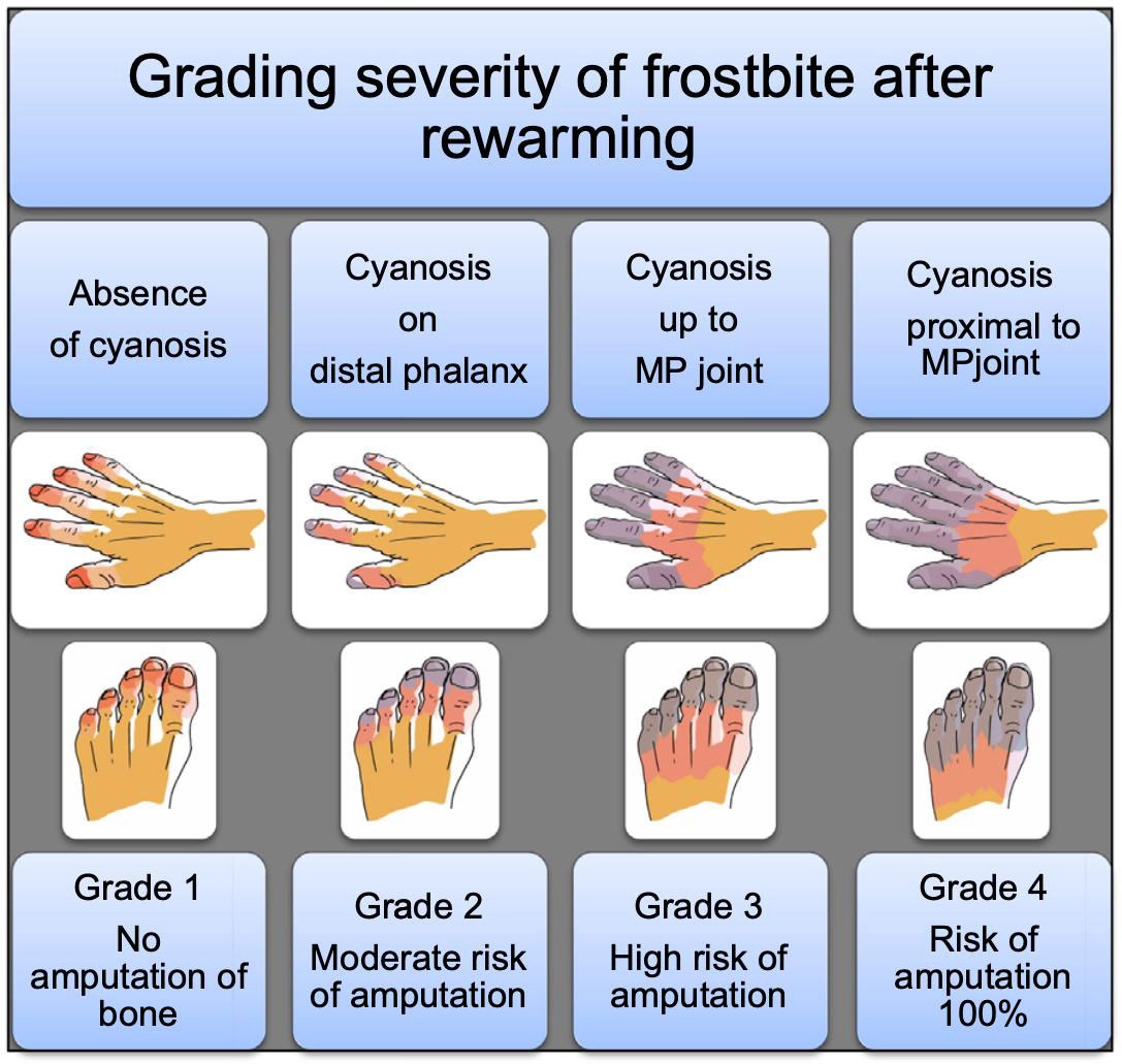 (1) Frostbite는 임상적으로 진단하며 특별한 혈액검사나 도움이 되는 영상 검사는 없다.