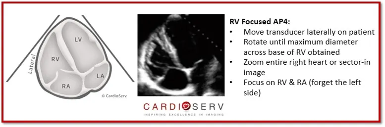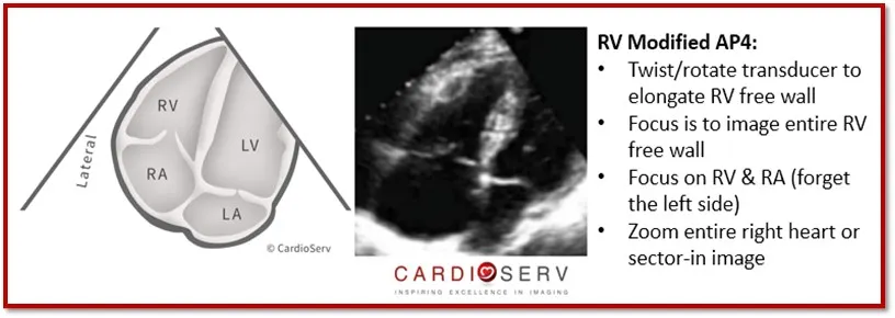 AP4 view에서 약간 lateral로 이동하고 RV의 diameter가 가장 커질 때 까지 돌림