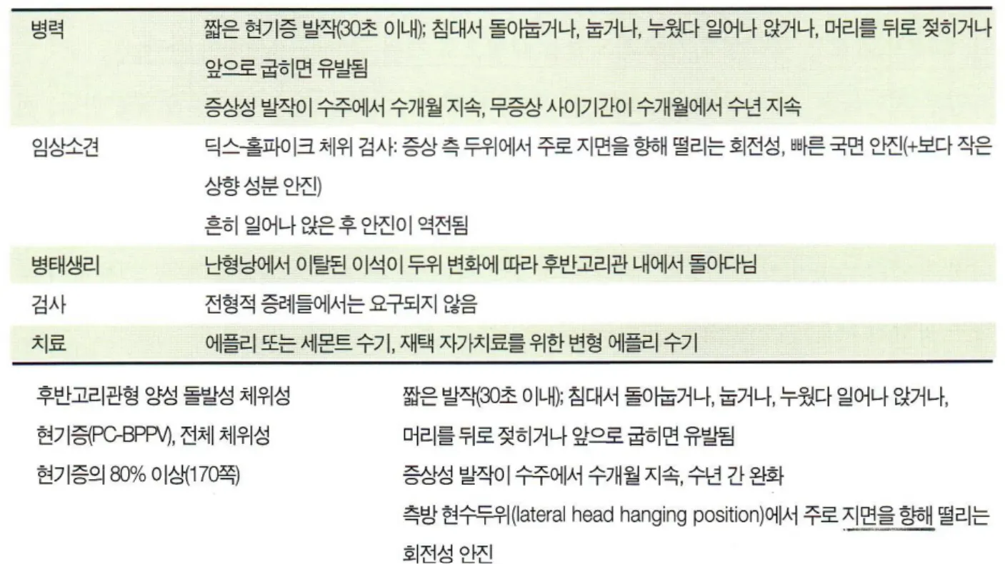 체위성 현기증의 가장 흔한 원인. 환자들의 약 90%를 차지함.