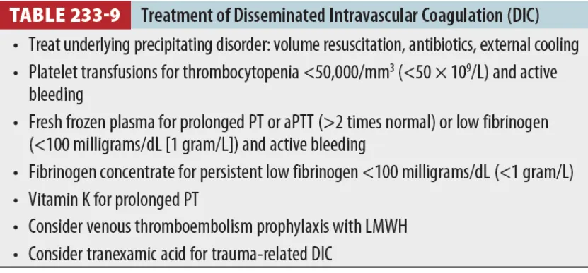 치료 → Bleeding risk에 기반함 (Table 233-3)
