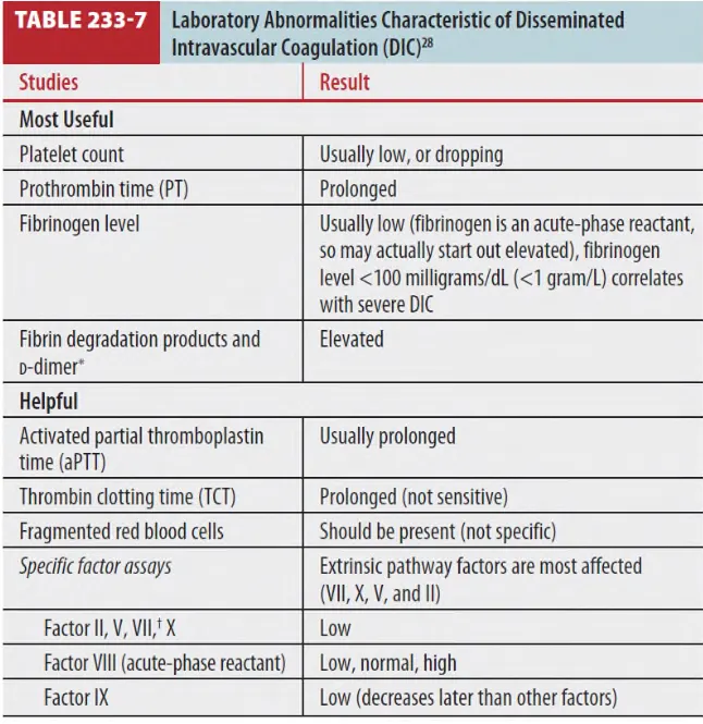 Fibrinogen 저하 : Acute-phase reactant로 DIC 초기에는 정상이거나 상승할 수 있음