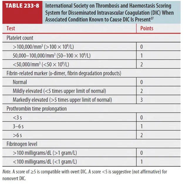Table 233-7, Table 233-8. DIC scoring system