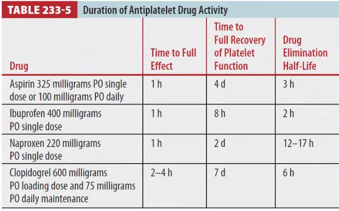 기타 NSAID, Clopidogrel, Ticlopidine도 일시적인 Plt adhesion 및 aggregation에 문제를 일으킨다. (Ch 239 참조)